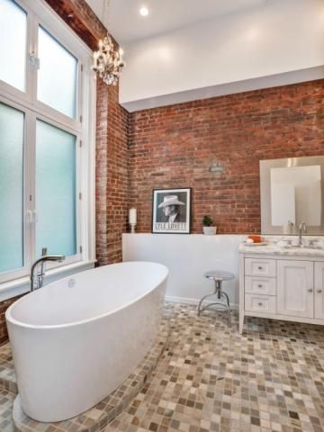 Modern Basement Bathroom With Red Brick Accent Wall Hgtv
